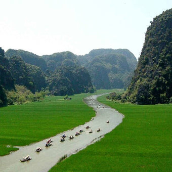 Proceed to Trang An Scenic Landscape Complex (UNESCO World Heritage Site). Enjoy a sampan boat ride through caves and limestone landscapes (Sang Cave, Toi Cave, Ba Giot Cave, Nau Ruou Cave).