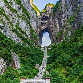 Proceed to Tianmen Mountain National Forest Park via one of the world’s longest cable cars.