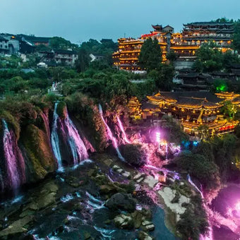Begin your journey in Xiamen, where modern coastal views meet cultural landmarks such as Xiamen University and the scenic Mountain-to-Sea Trail. Continue to Changsha and uncover the charm of Furong Town, a centuries-old village dramatically perched beside a cascading waterfall, glowing beautifully at night.
